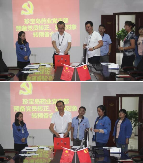 8月15日,經(jīng)上級黨委批準,珍寶島藥業(yè)(虎林)黨支部召開了支部黨員大會,討論表決兩名預(yù)備黨員轉(zhuǎn)正、兩名發(fā)展對象轉(zhuǎn)預(yù)備黨員事宜,黨支部書記蘭培寶主持會議,支部全體黨員參加會議。